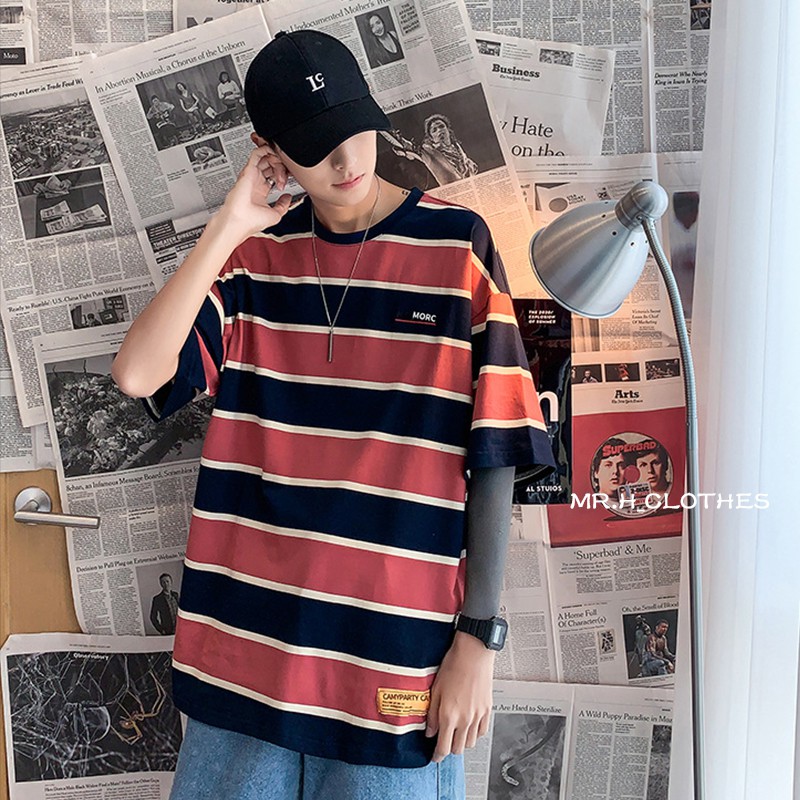 M 3xl Striped Tshirt Korean Trend Casual All Match Tops Men Clothes Couple Oversize Loose T Shirt For Men Shopee Philippines